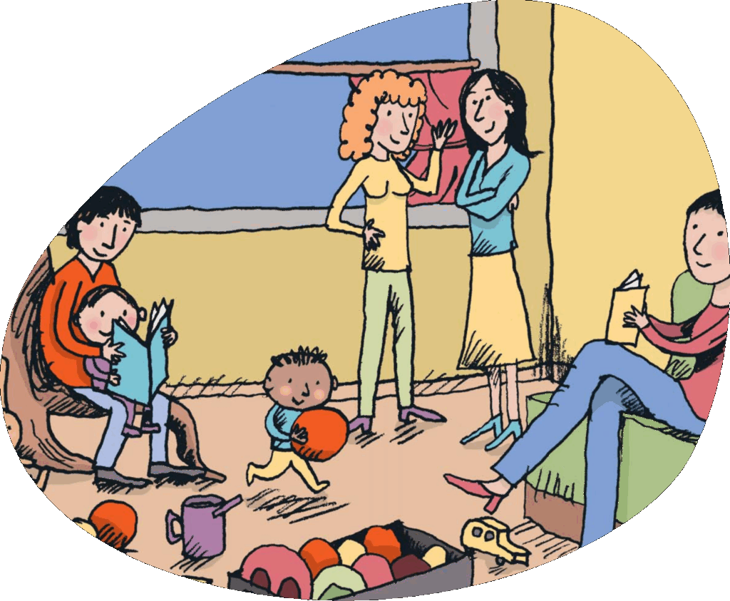 Les parents sont soutenus dans leurs joies et inquiétudes tout en découvrant leur propre savoir-faire, en lien avec les autres adultes présents.